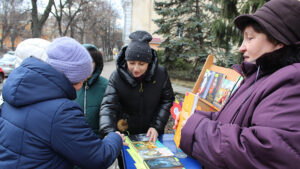 З нагоди Міжнародного дня дарування книги фахівці відділу обслуговування користувачів бібліотеки Чижевського провели вуличну акцію «З книгою в серці», метою якої було популяризувати читання, нагадати про важливість книги у житті людини.