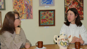 Під час розмови йшлося не лише про представлені роботи, а й про філософію творчості, пошук сенсів, кольорові пріоритети, внутрішні стани та джерела натхнення. Художниця ділилася своїми думками про особисте і професійне – як миті життя розгортаються у колір, форму, емоцію.