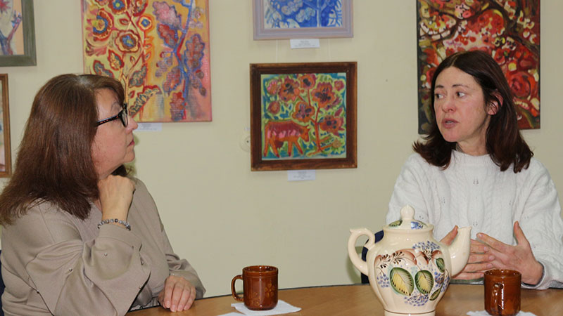 Присутні активно долучалися до бесіди, ставили запитання: чому мисткиня надає перевагу певним кольорам, як відчуває зв’язок між мовою живопису та мовою літератури, що для неї означає момент творчого прозріння.