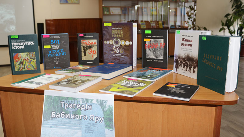 Учасники переглянули тематичні відеоматеріали й ознайомилися з виставкою «Трагедія Бабиного Яру», на якій представлені книжки та документи, що висвітлюють трагедію Голокосту: роман-документ «Бабин Яр» Анатолія Кузнєцова, книги «Бабин Яр. Минуле і сьогодення» Ісаака Трахтенберга, «Бабин Яр. Голосами» Маріанни Кіяновської, «Праведники Бабиного Яру» Іллі Левітаса, поетична антологія «Відлуння Бабиного Яру», матеріали міжнародної конференції «Бабин Яр: масове убивство і пам’ять про нього» та інші.