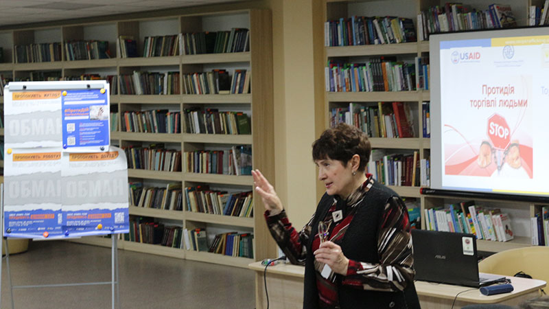 В один із акційних днів до бібліотеки ім. Д.І. Чижевського завітали студенти-старшокурсники Донецького державного університету внутрішніх справ, щоб взяти участь в інформаційно-тренінговому занятті «Знай, розумій та протидій», яке підготували працівники інформаційно-бібліографічного відділу головної книгозбірні області на відзначення в межах акції Дня боротьби з рабством (2 грудня).