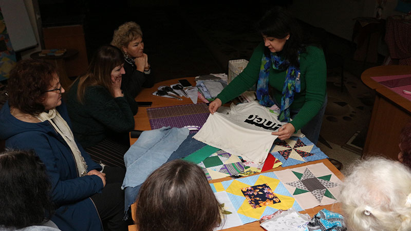 Учасники майстер-класу із захопленням створювали нові образи для старих речей – джинсових клаптиків, пошкоджених трикотажних майок, шматочків бавовняних тканин. У своїй уяві вони перетворювали їх на шопери, топи, подушки, серветки, покривала тощо. У цьому їм допомагала спікерка проєкту – Людмила Чистякова, майстриня печворку, професорка кафедри технологічної та професійної освіти ЦДУ імені В. Винниченка.