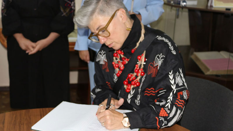 Пані посол була вражена кількістю ініціатив та проєктів, які втілює бібліотека. У книзі відгуків відділу рідкісних та цінних видань вона подякувала бібліотекарам за їхню важливу роботу і побажала успіхів.