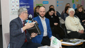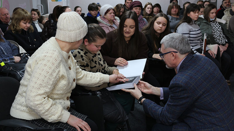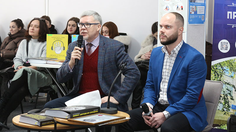 Про особливості задуму й реалізації другої версії «Українсько-англійського тематичного словника» шрифтом Брайля говорив автор задуму й натхненник виконання Ярослав Сидоренко – український педагог, перекладач, автор інноваційних освітніх проєктів і публікацій, експерт із питань освіти та інклюзії. Цього разу в назві книги відбилася її тематична спрямованість: «Побут і щоденне спілкування», підкреслюючи значимість в повсякденні для людей з порушеннями зору, котрі не зупиняються в своєму поступі й прагнуть до здобуття нових знань.