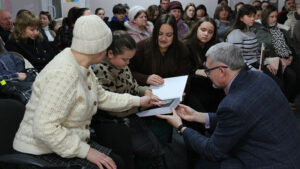 Директор бібліотеки Чижевського Валентина Животовська подякувала Ярославу Сидоренку за активність у реалізації свого прагнення допомогти, висловила прихильність колективу закладу до подібних проєктів і їхнього якнайнайширшого оприлюднення та необхідність масштабування, висловила ідею видання словника на рівні України, зазначила, що саме небайдужість і емпатія, які дарують людям можливість відчувати світ уповні, роблять нас сильними, а єдність уможливлює перемогу добра над злом.
