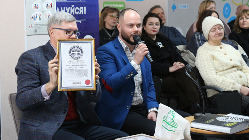 Непересічною подією, яка зібрала й об’єднала людей із порушеннями зору, тифлопедагогів, соціальних працівників, представників Українського товариства сліпих, фахівців бібліотек міста й області, перекладачів, освітян з університету Володимира Винниченка, Донецького державного університету внутрішніх справ, Української державної льотної академії, небайдужих кропивничан, стала презентація 2-го видання «Українсько-англійського словника» шрифтом Брайля авторства Ярослава Сидоренка в Обласній універсальній науковій бібліотеці ім. Д. І. Чижевського.