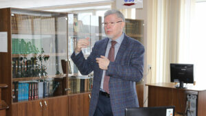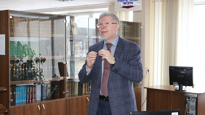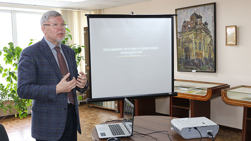 Лекцію та презентацію унікальних документів, представлених на виставці, про яку ми вже писали, провів головний бібліотекар відділу, доктор філологічних наук, професор Сергій Михида. Євген Маланюк розкривався перед слухачами в усьому багатстві життєвих колізій та всіма гранями його таланту.