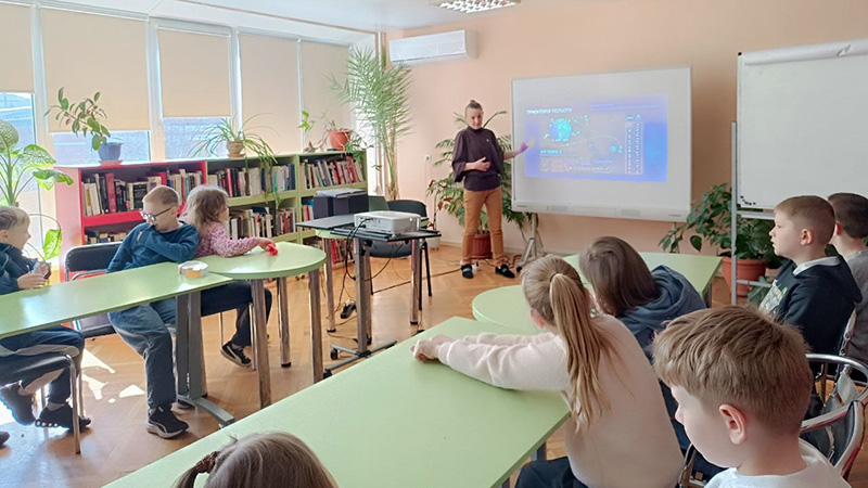 Особливу увагу приділили сучасним досягненням космічної галузі, а саме місії «Artemis II» – першому за понад 50 років пілотованому польоту до Місяця. Діти ознайомилися з траєкторією руху космічного корабля та особливостями перебування астронавтів у невагомості.