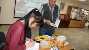Приємною подією для відділу обслуговування користувачів Обласної універсальної наукової бібліотеки імені Дмитра Чижевського стала презентація книги Ольги Могильди та Макара Юхименка «Коти-мандрівники й шахова дошка».