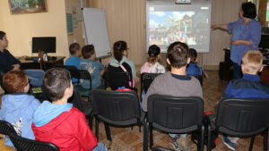В Інтернет-центрі юні кропивничани відправилися у віртуальну екскурсію по атракціонах Діснейленду – одного з найбільш відвідуваних місць у світі. Королівство фантазій вражаюче, яскраве й має величезну кількість таємниць. Наприклад, про ціле котяче царство, в якому живуть і працюють вусаті-полосаті.