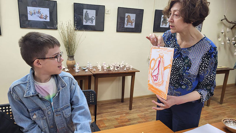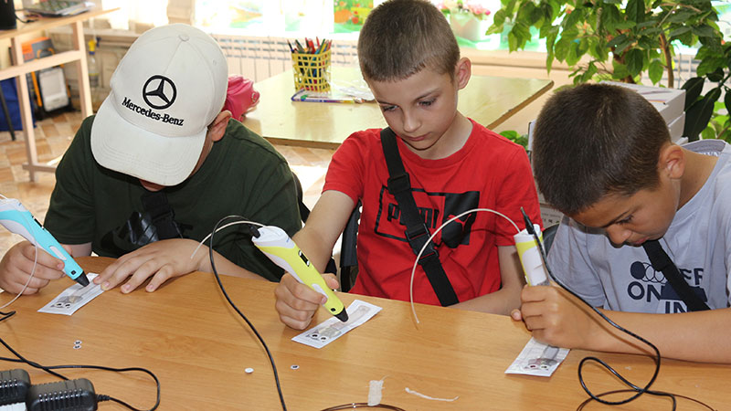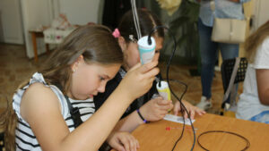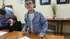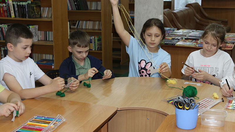Тим часом у відділі мистецтв займалися ниткографією. Це якесь диво! Лише нитка і фантазія. Вони сотворили чайник, метелика, жирафа, змія, шиншилу і навіть людський мозок!