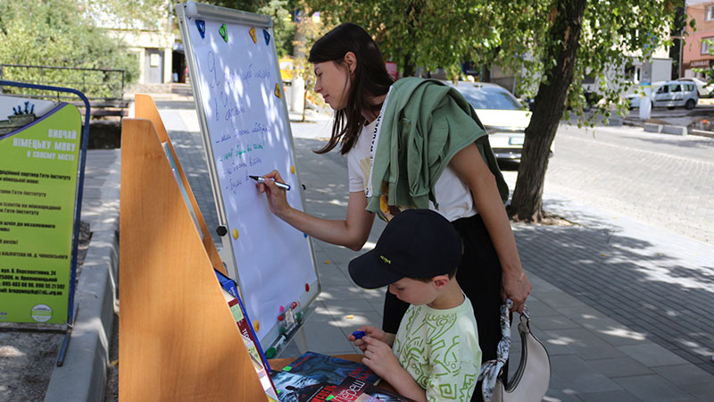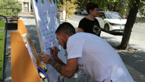 Серед акційних заходів найбільше увагу громадян привернула пропозиція взяти участь у бліц-опитуванні на фліпчарті: залученим пропонували закінчити речення «Я хочу, щоб молодь в Україні…».