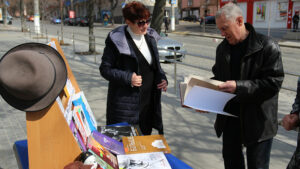 Поруч з бібліотекою розгорнули тематичну книжкову локацію. Перехожим та гостям Кропивницького презентували видання, присвячені історії становлення Театру Корифеїв та життєвому шляху видатних митців. Особливий інтерес викликали книги «Марко Кропивницький та Іван Тобілевич у Бобринці» Руслани Ісакової та «Актор № 1» Ірини Батько-Ступки.