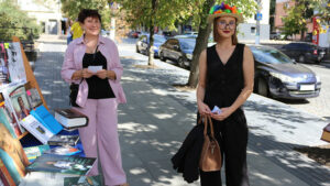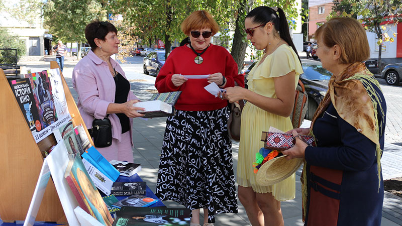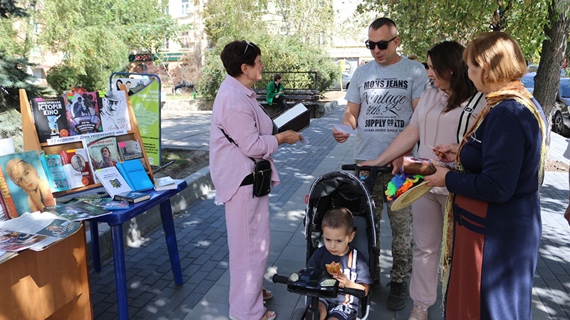 На виносній книжковій полиці перехожі могли ознайомитись із книгами про українське кіномистецтво, а також журналами «Кіно-театр» і «Новини кіноекрану», які є у фондах бібліотеки.
