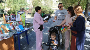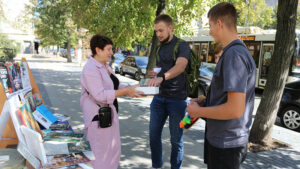 А що знають кропивничани про українське кіно? Чи дивляться вони фільми українських режисерів? Під час вуличної акції «Мить у кадрі: з Україною в серці» це й з’ясовували бібліотекарки. Фахівчині підготували добірку цікавих фактів з історії українського кінематографа і пропонували всім охочим з ними ознайомитись.