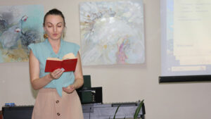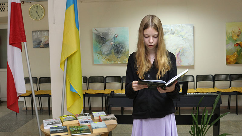 До заходу онлайн долучилася викладачка польської мови з Центру розвитку польської освіти за кордоном Веслава Туржанська. Вона й підготувала добірку творів для читання.