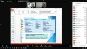 Ірина Чирва надала інформацію учасникам вебінару про оцінку виробничих небезпечних факторів та ризиків у воєнний час, про розслідування та моніторинг нещасних випадків, захворювань і аварійних ситуацій на підприємствах України й Кіровоградської області, про вплив новітніх технологій, зокрема, штучного інтелекту на безпеку та гігієну праці. Олена Хіміч поінформувала про психосоціальну підтримку на робочому місці, так як саме робота має суттєве значення для психічного здоров’я працюючих. Зупинилась на законодавчих матеріалах з цього питання, симптомах стресу (фізичних, психологічних, поведінкових), ознайомила з етапами запровадження психосоціальної підтримки.