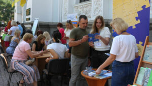 Цією важливою інформацією з мешканцями міста ділилися учасники акції. Серед перехожих влаштували соціальне опитування «Що ви знаєте про торгівлю людьми? Чи впізнаєте ви сучасне рабство?». Охочі брали участь в інтерактивній онлайн-грі «Правда чи фейк про торгівлю людьми».