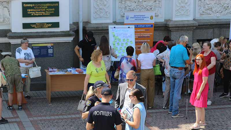 Підтримати акцію прийшли представники Кіровоградського обласного центру зайнятості, Кіровоградської обласної прокуратури, ГУ Національної соціальної сервісної служби у Кіровоградській області, відділу міграційної поліції головного управління поліції в Кіровоградській області, Управління патрульної поліції в Кіровоградській області Департаменту патрульної поліції, Управління Держпраці у Кіровоградській області, а також члени громадських організацій «Чистий аркуш» та «Десяте квітня».