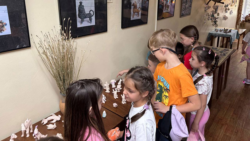 Також завітали до відділу мистецтв, у якому їм запропонували отримати доступ до великого творчого світу та доторкнутися, в прямому сенсі, до мистецтва. Були в захваті від виставок, які наразі експонуються. А це експозиції робіт з глини «Кераморитми» студентів мистецького факультету нашого Центральноукраїнського державного університету та старожитностей «Легенди чумацького шляху».