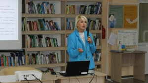 Спікером була Надія Оперчук, головна державна санітарна лікарка області. Вона поділилася актуальною інформацією про поточну статистику захворюваності на COVID 19, грип та ГРВІ, розповіла про нові штами коронавірусу та їх особливості. Окремо наголосила на важливості профілактики інфекцій та вакцинації.