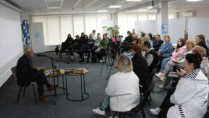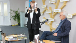 У другій половині дня відбулися зустрічі з літераторами. Відвідувачі бібліотеки мали нагоду познайомитися з новою книгою Олександра Жовни «Будинок на околиці», а також послухати поезії голови Національної спілки письменників України в Кіровоградській області, письменниці і поетки Надії Гармазій.