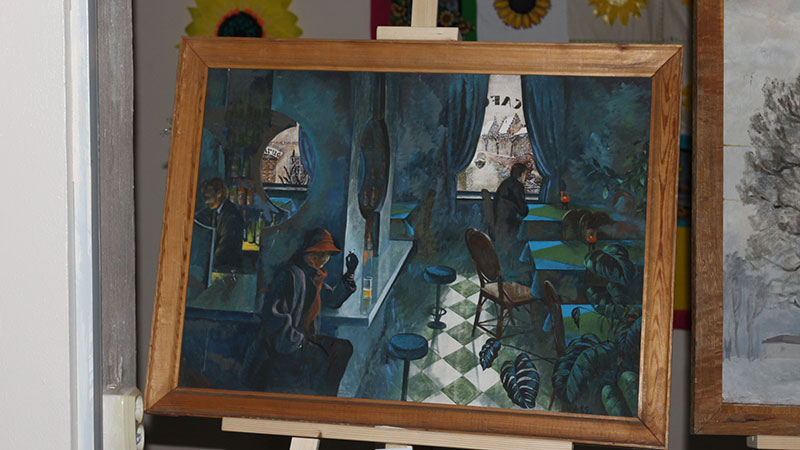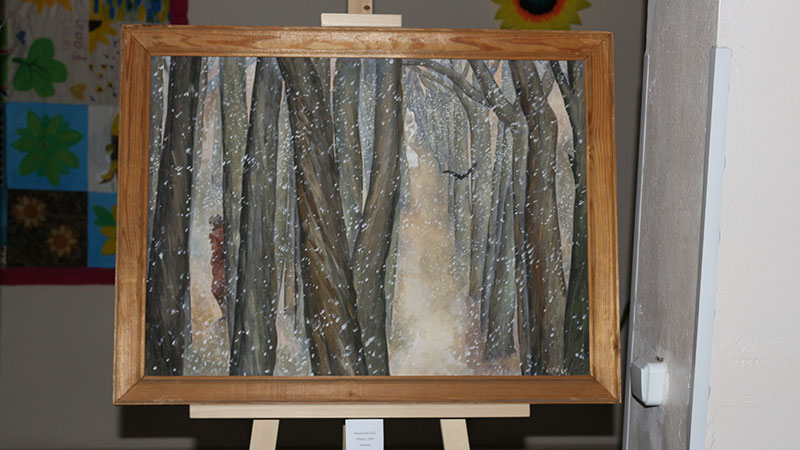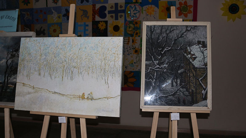 На виставці представлені роботи Н. Аксьонової «Кафе» (1980, темпера), А. Пунгіна «Стара алея» (1988, полотно, олія), Ю. Скаканді «Зима в Карпатах» (1991, акварель), Я. Басова «Очікування весни» (1990, акварель), М. Нєкрасової «Падав сніг» або «У гості» (2016, полотно, олія), В. Масика «Зима у Київській Лаврі» (1988, картон, пастель).