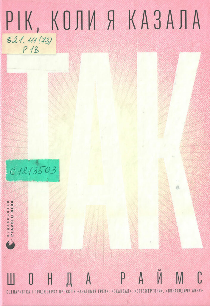 Рік, коли я казала так / Шонда Раймс; переклад з анг. Юлі Масюкевич. – Львів: Видавництво Старого Лева,2024. – 328 с.