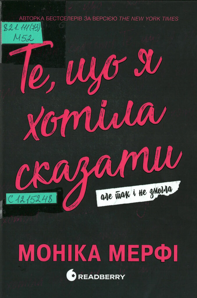 Ланкастер. Те що я хотіла сказати, але так і не змогла: роман / Моніка Мерфі; пер. з англ. М. О. Бієнко. – Х.: Вид-во «Ранок», Readbtrry, 2025. – 624 с.