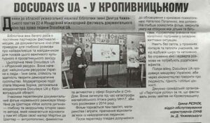 Днями до Обласної універсальної бібліотеки імені Дмитра Чижевського завітав 22-й Мандрівний міжнародний фестиваль документального кіно про права людини Docudays UA.
