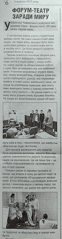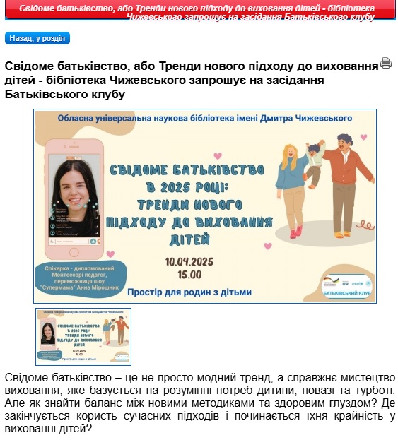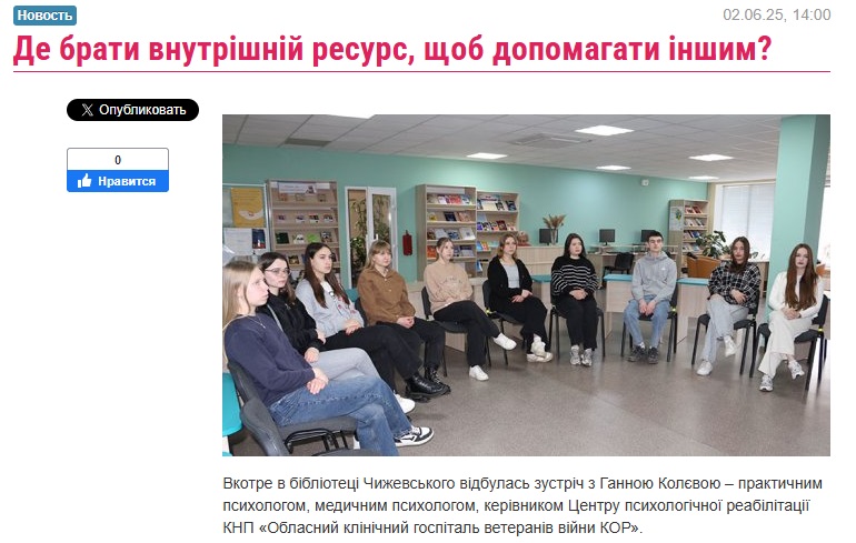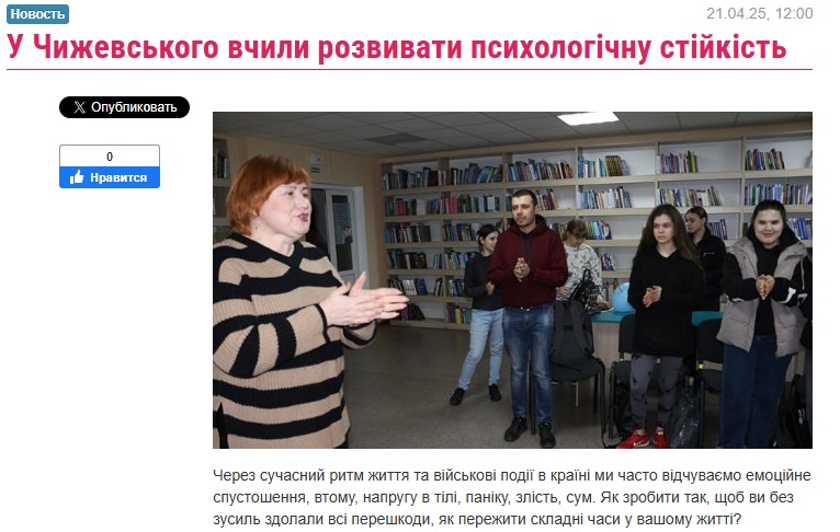 Разом Ми Можемо: У бібліотеці ім. Чижевського стартує новий проєкт з молодіжного лідерства // Тусовка. – Режим доступу: https://tusovka.kr.ua/news/2025/02/18/razom-mi-mozhemo-u-bibliotetsi-im-chizhevskogo-startue-novii-proekt-z-molodizhnogo-liderstva?from=list. – Дата публікації: 18.02.2025.