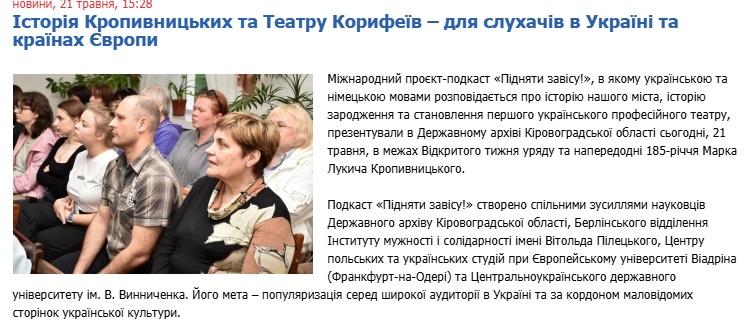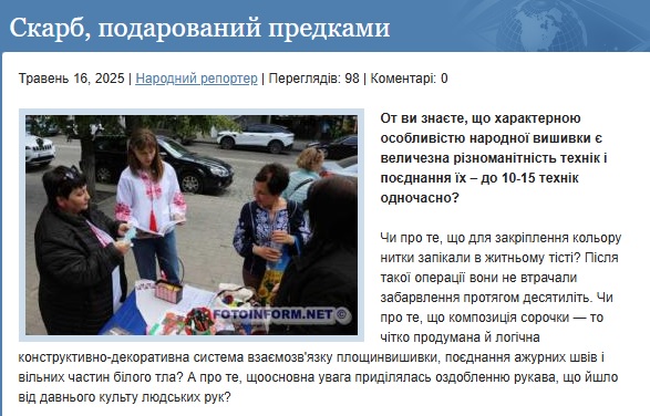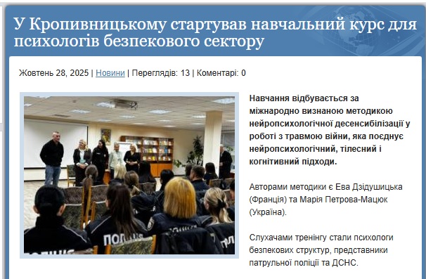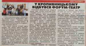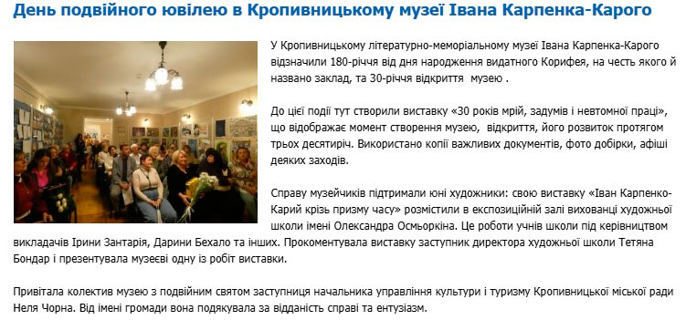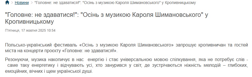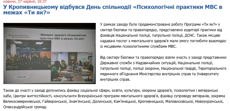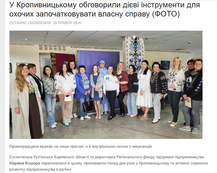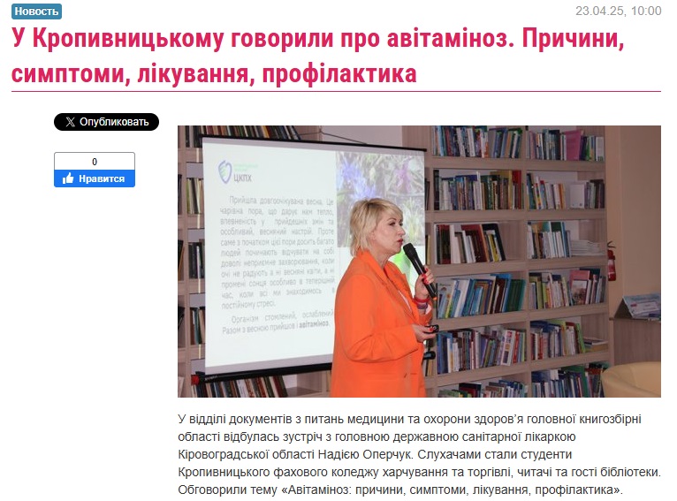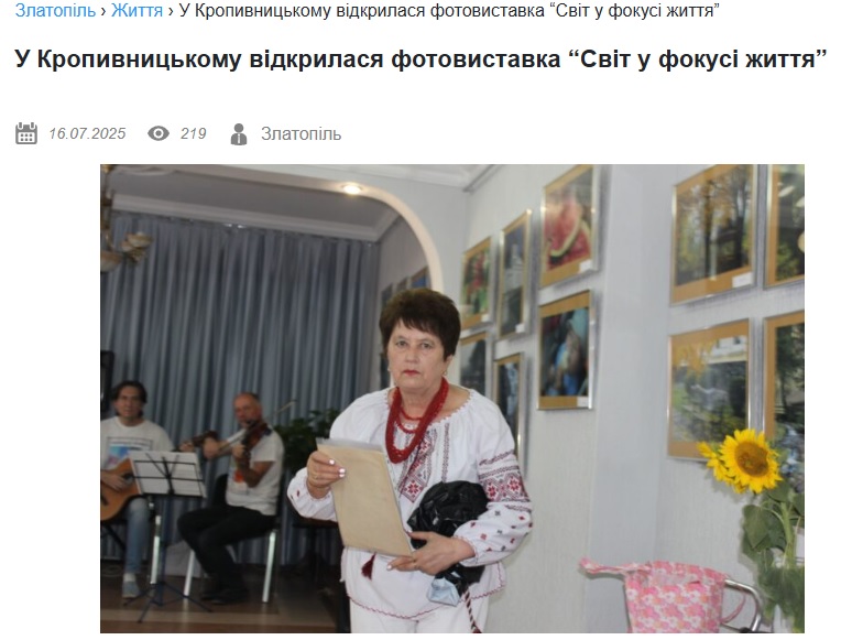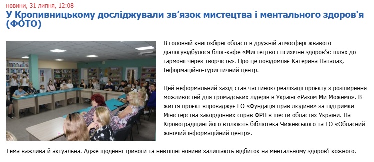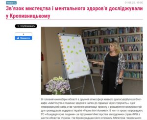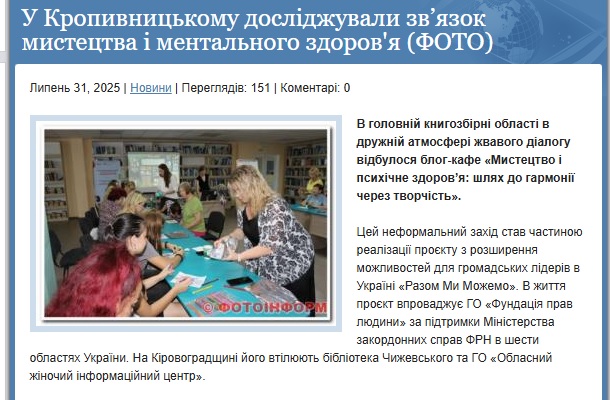 У Кропивницькому говорили про роль мистецтва в зміцненні здоров’я // Фотоінформ – Режим доступу: https://www.fotoinform.net/news/narodniy-reporter/u-kropivnitskomu-govorili-pro-rol-mistetstva-v-zmitsnenni-zdorovya.html. – Дата публікації: 31.01.2025.