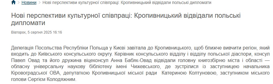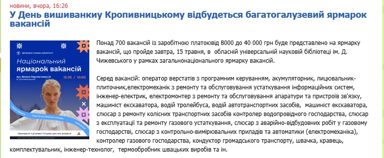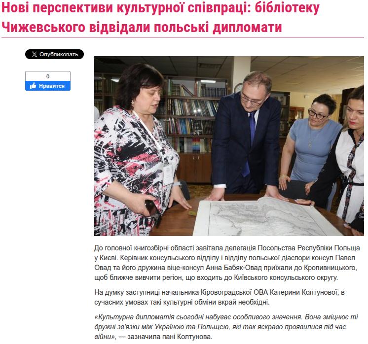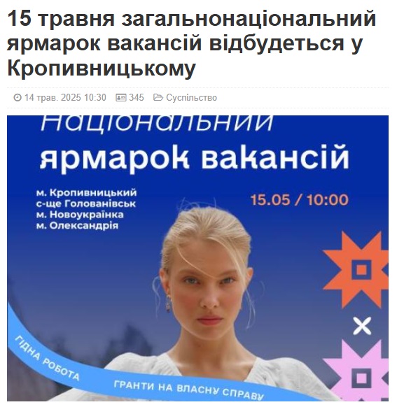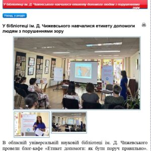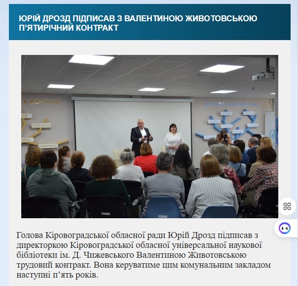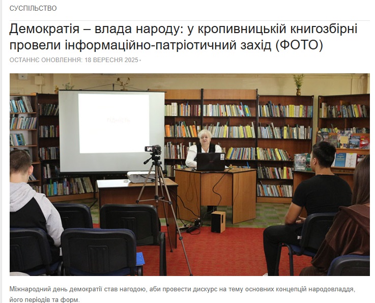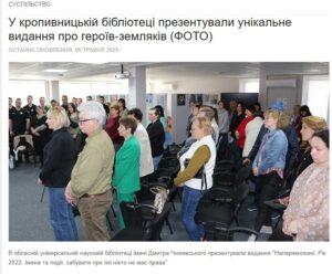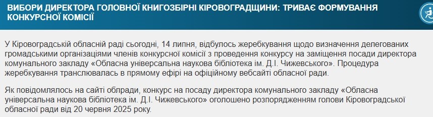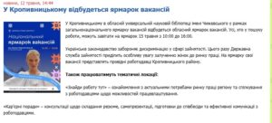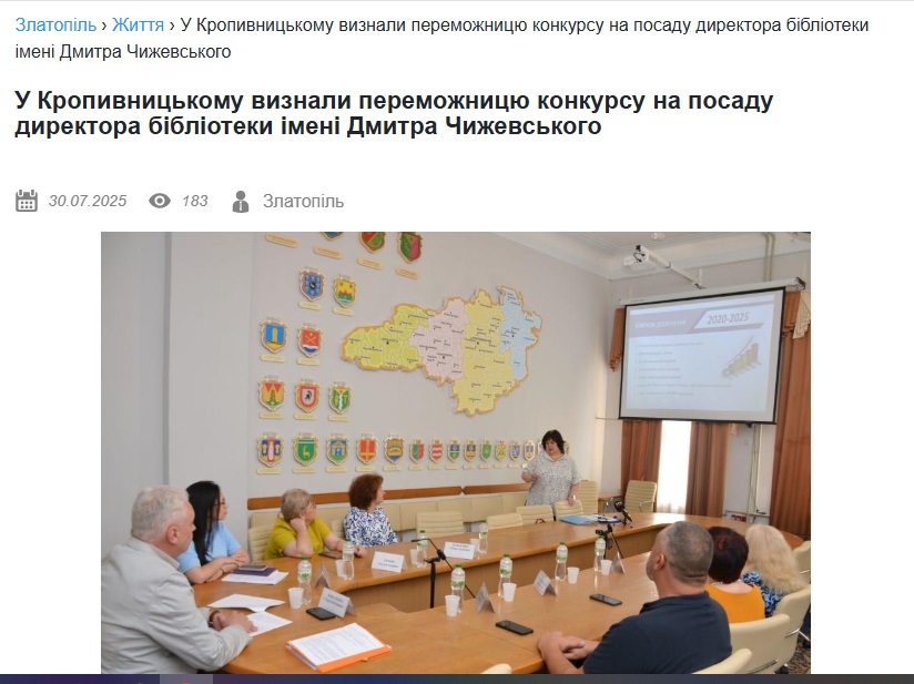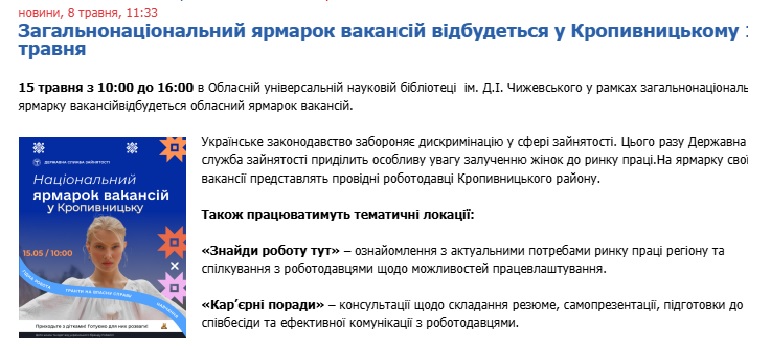 Трудові відносини без складнощів: важливий і потрібний проєкт в бібліотеці Чижевського // Кіровоградська обласна рада. – Режим доступу: https://oblrada.kr.ua/event/011020251051. – Дата публікації: 10.01.2025.