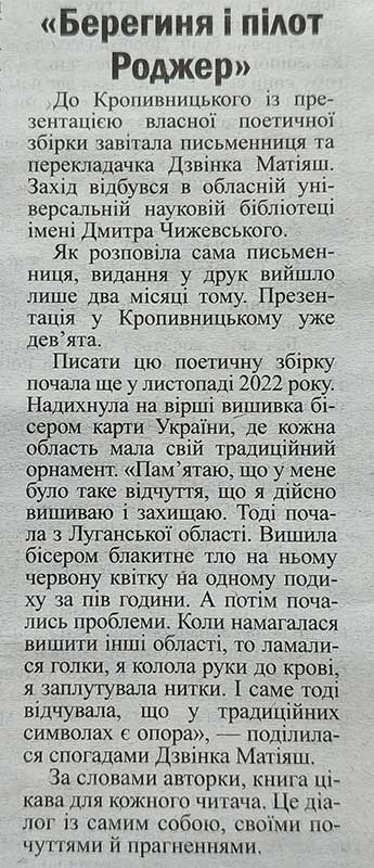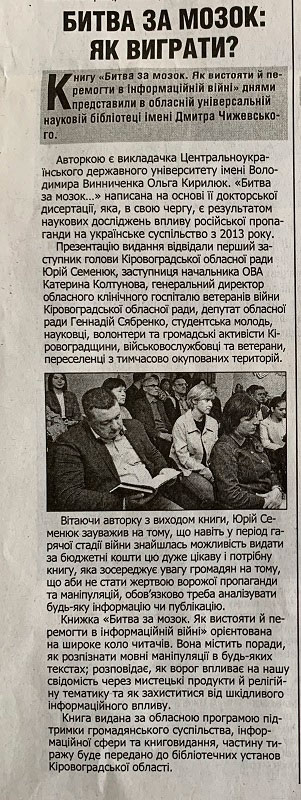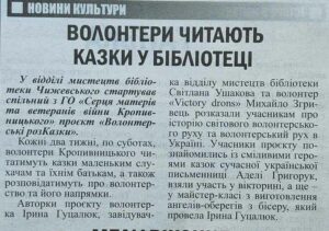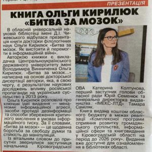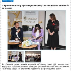 У Кропивницькому в обласній універсальній науковій бібліотеці ім. Д. Чижевського відбулася перша презентація дитячої книжки Наталії Копієвської “Кропокиці: Муся і Пуся або таємниці нашого міста”.