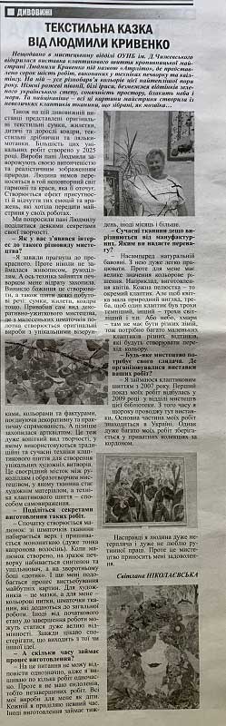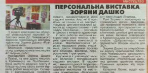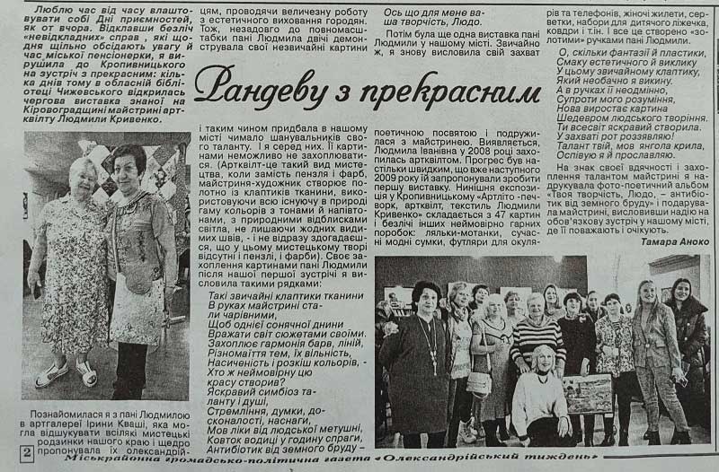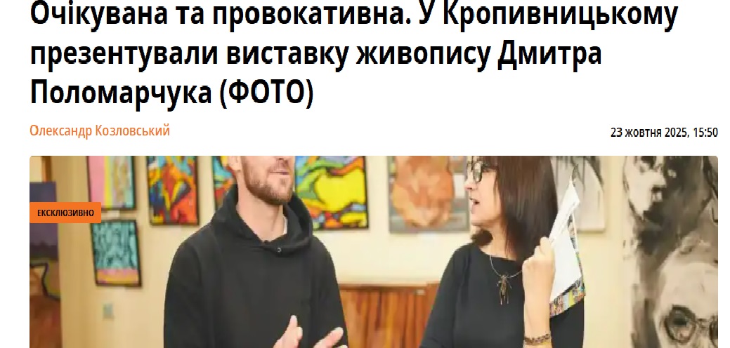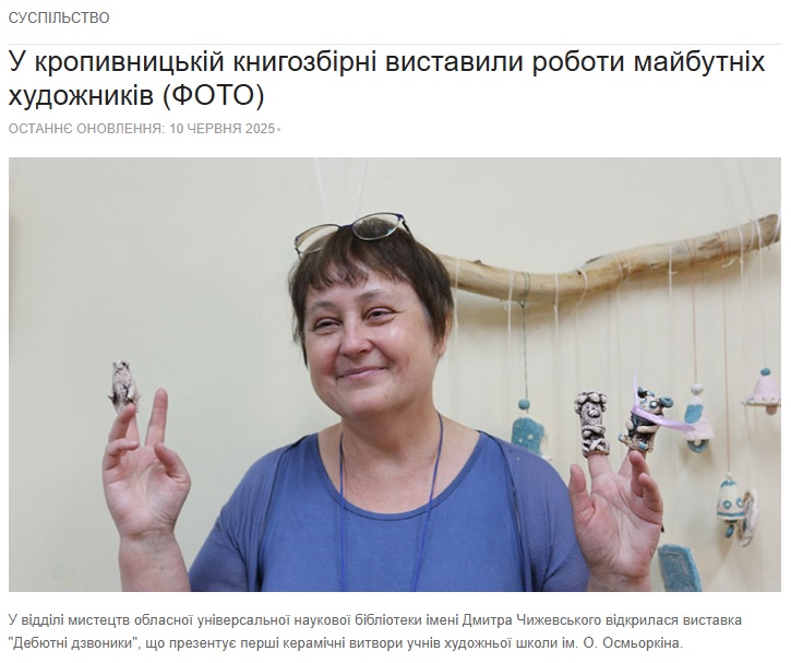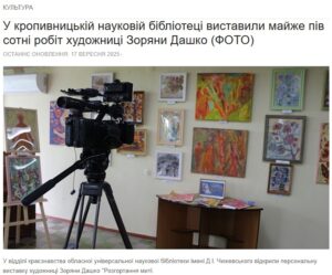 У Кропивницькому відкрили благодійну виставку 18-річної художниці // Суспільне Кропивницький. – Режим доступу: https://suspilne.media/kropyvnytskiy/949671-u-kropivnickomu-vidkrili-blagodijnu-vistavku-18-ricnoi-hudoznici/. – Дата публікації: 16.02.2025.