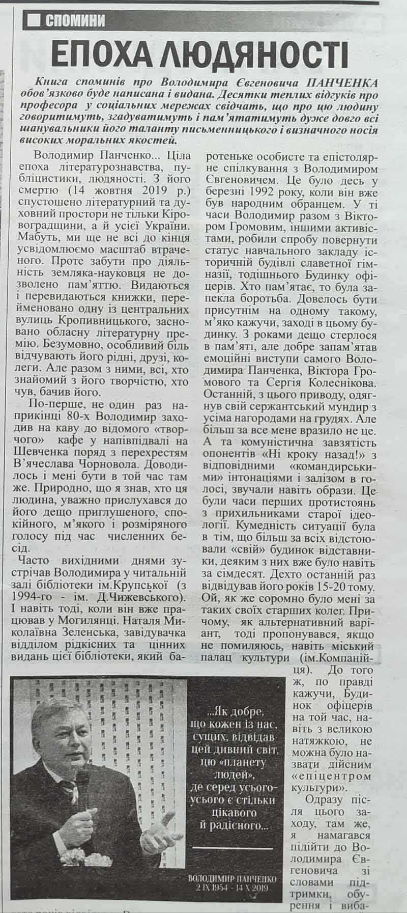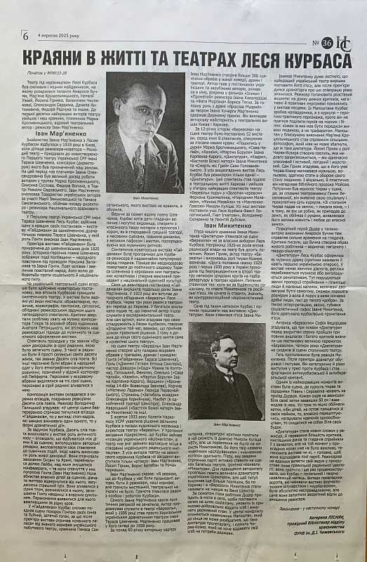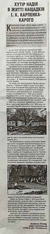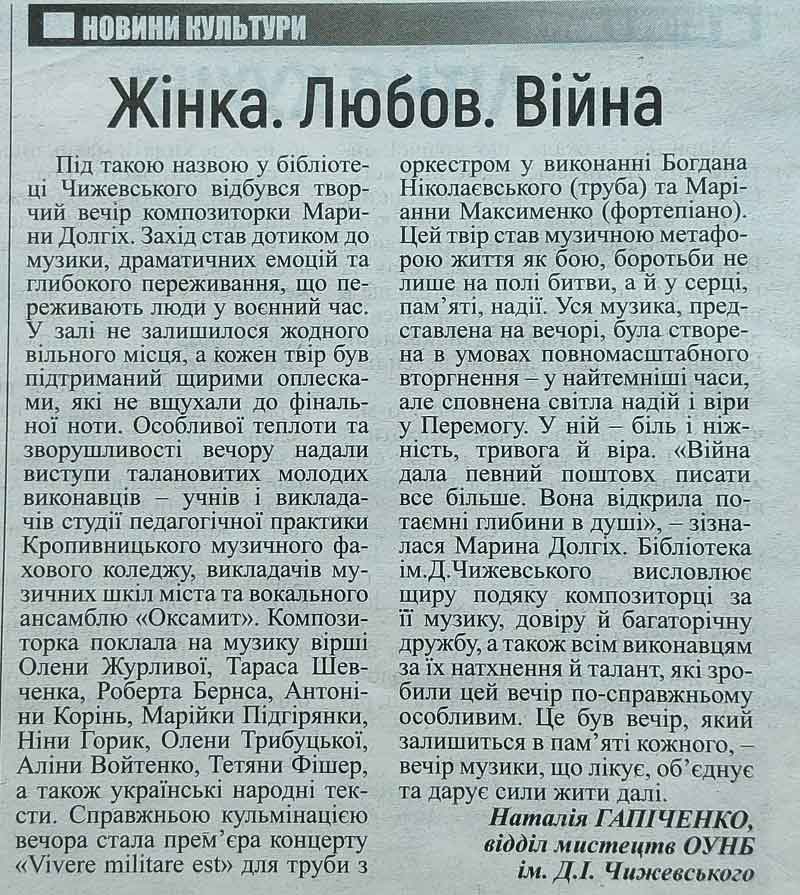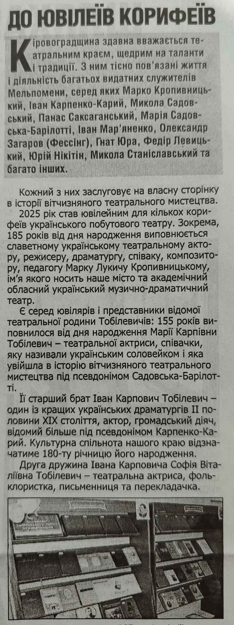 Ніколаєвська Світлана. Євген Маланюк і музика / Світлана Ніколаєвська // Кіровоградська правда. – 2025. – 13 лютого. – С. 7 : фото