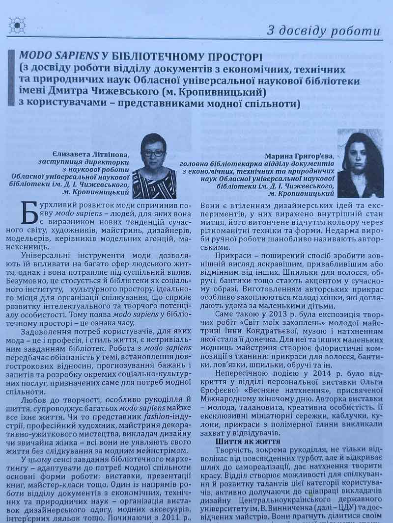 З досвіду роботи відділу обслуговування користувачів Обласної універсальної наукової бібліотеки імені Дмитра Чижевського.