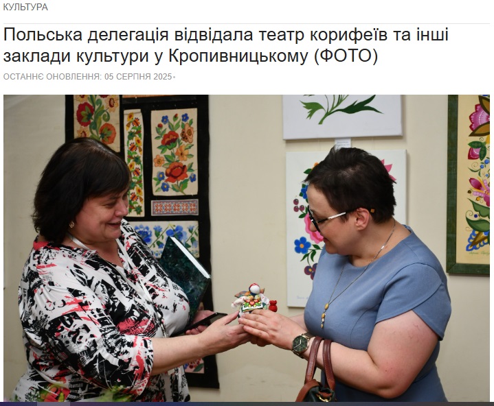 У Кропивницькому говорили про роль мистецтва і культури в зміцненні здоров’я // Тусовка. – Режим доступу: https://tusovka.kr.ua/news/2025/02/06/u-kropivnitskomu-govorili-pro-rol-mistetstva-i-kulturi-v-zmitsnenni-zdorov-ja?from=list. – Дата публікації: 06.02.2025.
