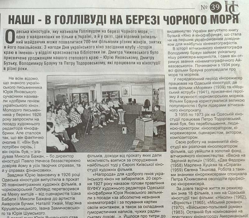 В Обласній універсальній бібліотеці імені Д.І.Чижевського відбувся показ кінокартини Олександра Жовни «Сашенька».