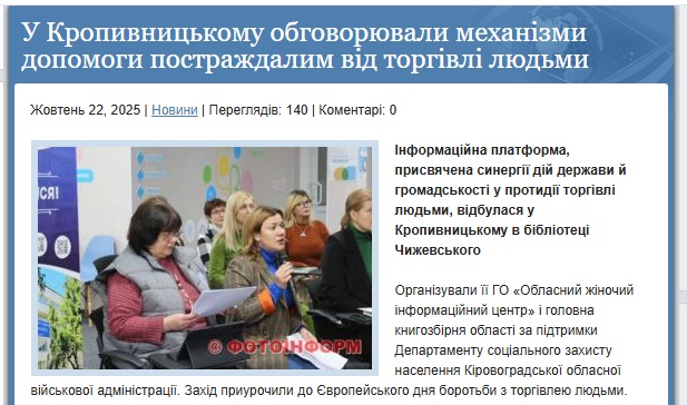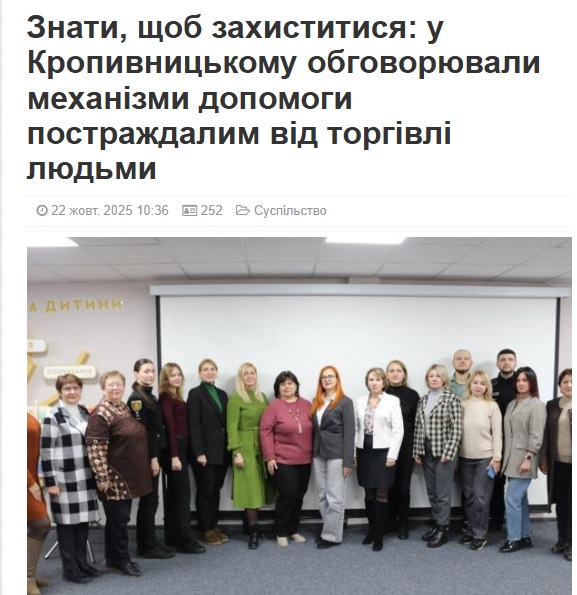 У Кропивницькому розповіли, як вберегти дітей від інтернату // Фотоінформ. – Режим доступу: https://www.fotoinform.net/news/novosti-na-ukrainskom-yazike/u-kropivnitskomu-rozpovili-yak-vberegti-ditey-vid-internatu.html. – Дата публікації: 21.11.2025.