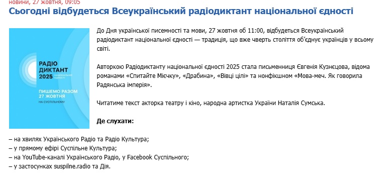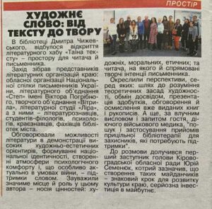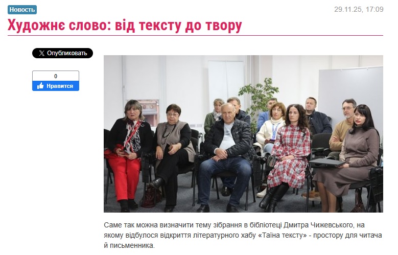 Художнє слово: від тексту до твору // Тусовка. – Режим доступу: https://tusovka.kr.ua/news/2025/11/29/-hudozhne-slovo-vid-tekstu-do-tvoru?from=list. – Дата публікації: 29.11.2025.