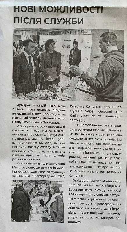 Нові можливості після служби // Кропивницький вечірній. – 2025. – 14 листопада. –.С. 3 : фото.