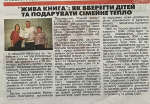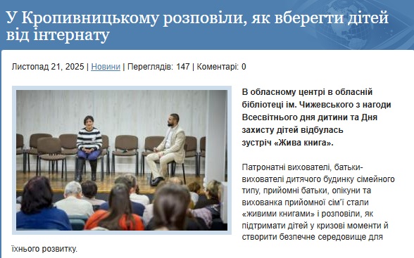“Жива книга”: у Кропивницькому розповіли, як вберегти дітей від інтернату й подарувати сімейне тепло // 21-ий канал. – Режим доступу: https://21ch.kr.ua/posts/index/view/name/-1763633126. – Дата публікації: 20.11.2025.