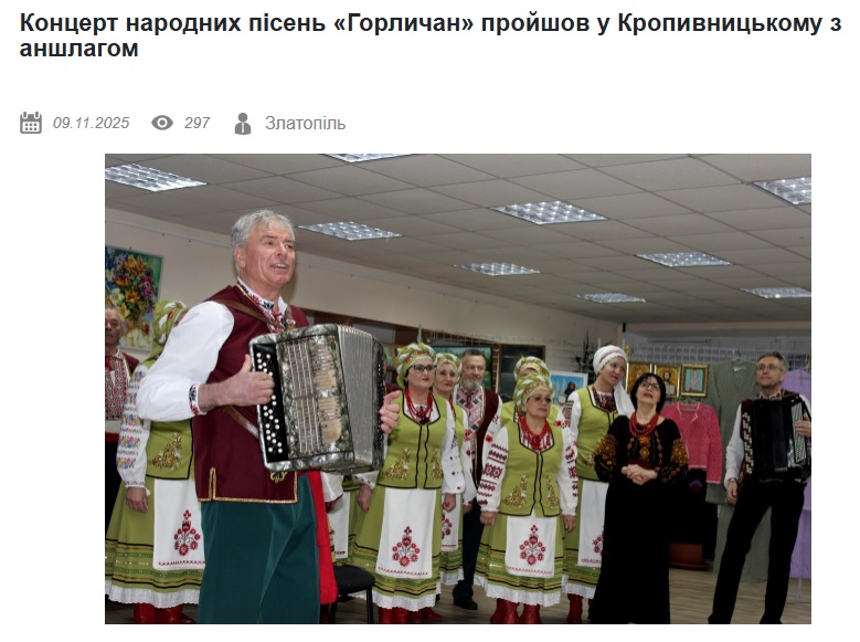 У Кропивницькому вiдбулася зустрiч iз заслуженою артисткою України // Златопіль. – Режим доступу: https://zlatopil.com/all-news/u-kropyvnytskomu-vidbulasya-zustrich-iz-zasluzhenoyu-artystkoyu-ukrayiny. – Дата публікації: 28.11.2025.