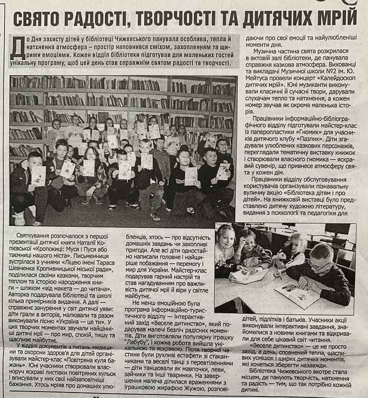 В обласному центрі жо Дня захисту дітей у бібліотеці Чижевського панувала особлива, тепла й натхненна атмосфера – простір наповнився сміхом, захопленням та щирими емоціями.