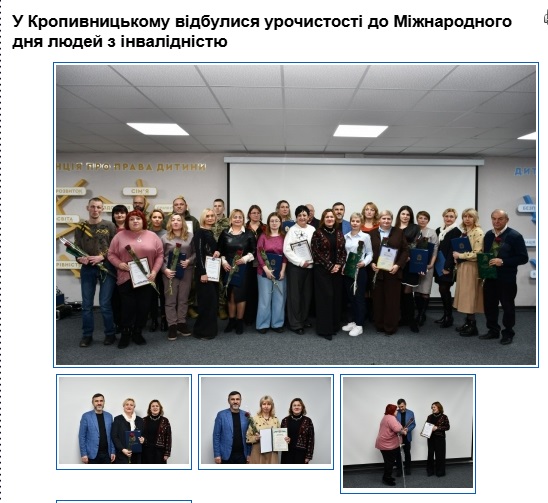 У Кропивницькому у Міжнародний день людей з інвалідністю, який відзначають щорічно 3 грудня, відбулися урочистості. Під час заходу вручили подяки й відзнаки від міністерства та обласної влади.